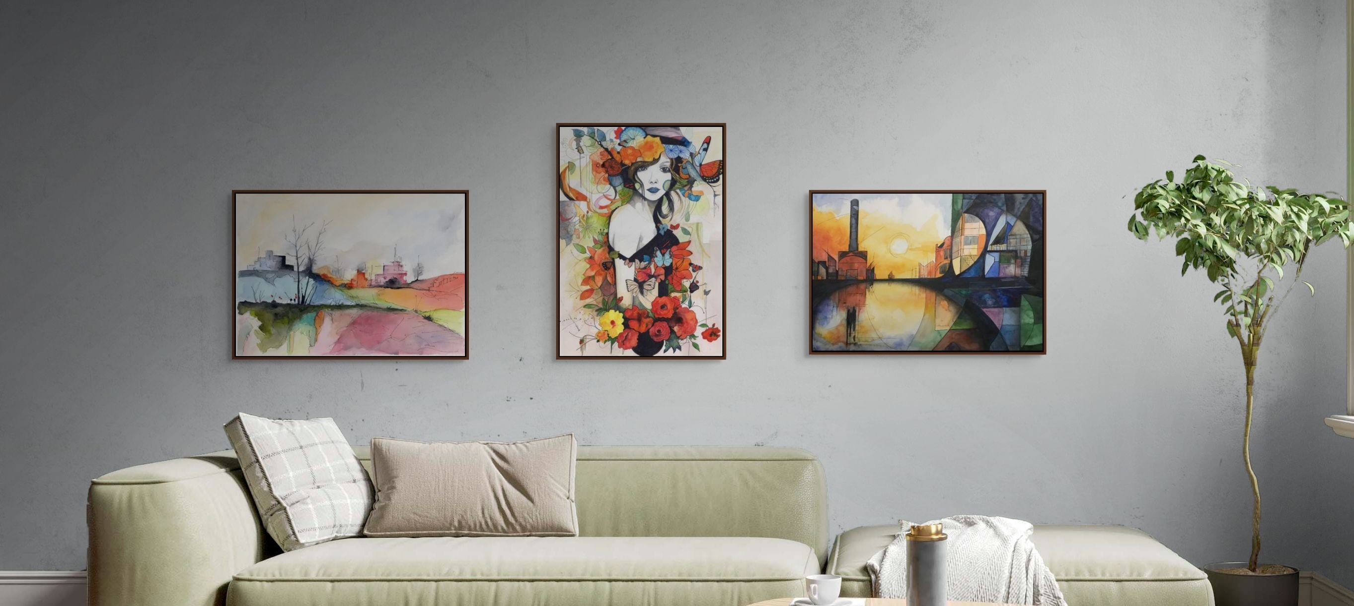I work in watercolour, acrylics, charcoal, and mixed media — mostly because I’ve never been able to commit to just one. My paintings range from quiet little studies of interiors (translation: my living room) to more experimental pieces where form, texture, and abstraction do whatever they like while I pretend I’m in control.
